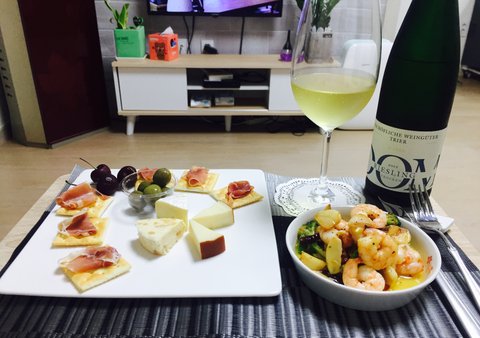 일요일 저녁엔 치즈/감바스/카나페 등 혼자 예쁘게 차려놓고 주말의 마무리를 와인과~