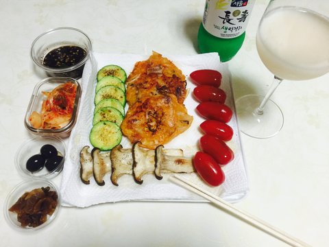 약속없는 불금엔 소소하게 버섯/ 호박/ 김치전에 막걸리 한잔 ..
