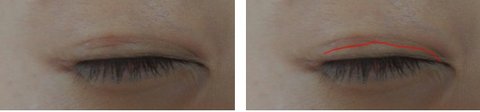 다시 라인을 잡기 위해서 한건데 원래 라인은 지워지지 않고 눈을 뜰 때 위에 처음 수술한 라인으로 쌍커풀이 생겨요 결론은 새로한 라인은 흉터처럼 남아있게 되고 재수술의 의미가 없어진겁니다.