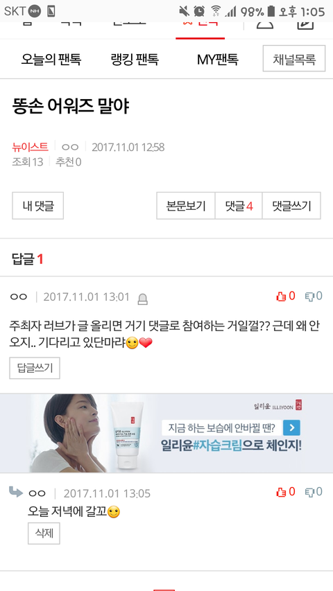 (저 똥촉어워즈 개최하면 1등할 수 있을 거 같아요 ㅋㅋ)