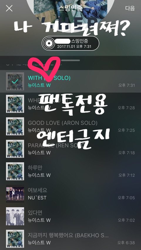 근데 우리가 매일 1분 정도씩만 투자해서 뉴이스트가 상위 순위가 되면 자연스럽게 해외에 노출된다~