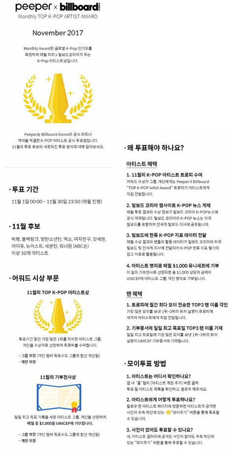 '11월 K-Pop 아티스트' 어워드(2017.11.01 00:00~2017.11.30 23:50)