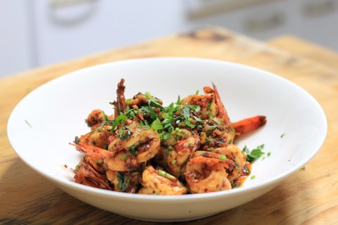 제철 맞은 대하를 사용해서 매콤한 새우 요리를 해봤습니다.