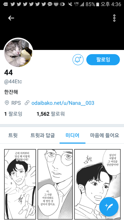 내가 분명 옛날에 이 그림체 그림을 본적잇단말이야 북한에서 온 챤 이랑 형사 뱩으로 근데 그때 작가님 이름이 4.4님이 아니셨단말이야 내가봣단 그 그림도 없고..트윗도 몇개없으신데 다른계정이신걸까? 혹시 그렇다면 작가님 다른 계정아는 사람좀 알려주라 ㅜ