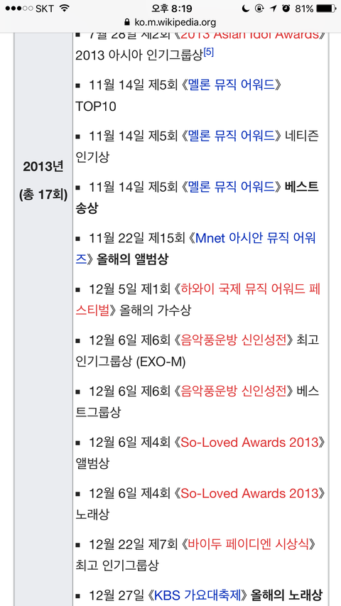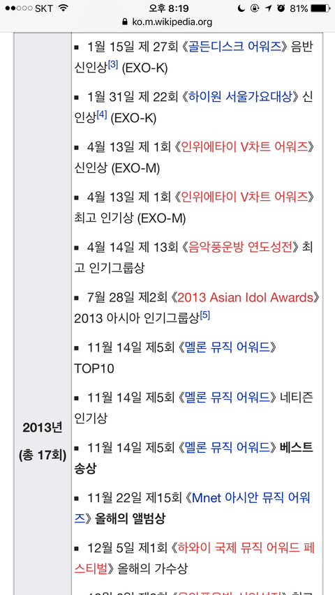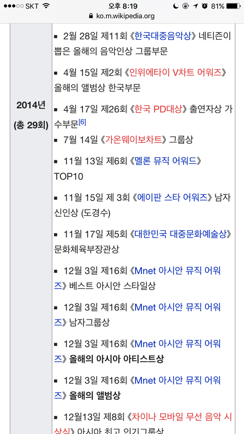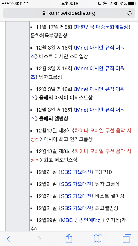 엑소 대상 역대목록