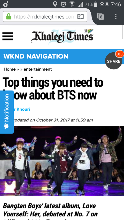 중동지역에서 가장 유명한 신문사중 하나인데 방탄이 어제 헤드 장식했더라구요.