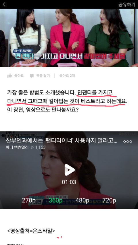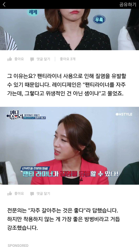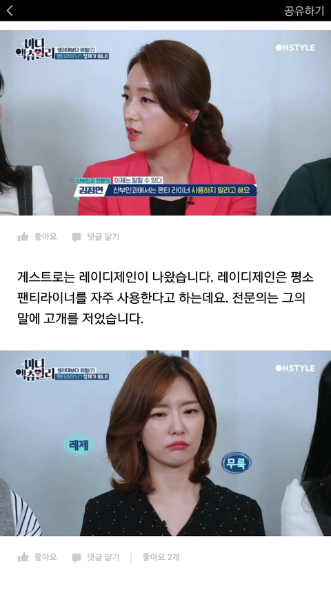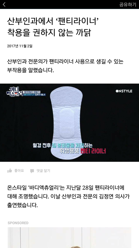 미친 ㅋㅋㅋ 얘들아 팬티라이너 쓰지말래