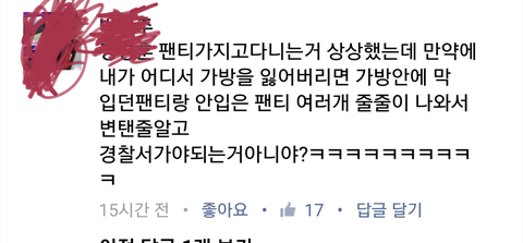 미친ㅋㅋㅋㅋㅋㅋ 면팬티를 많이 가져 다니면서 그때그때 갈아주라는데 ㅅㅂ 이젠 팬티도 일회용으로 여러개씩 가져 다녀야 함?? ㅋㅋㅋㅋㅋㅋㅋㅋ 너넨 이거 어떻게 생각해??