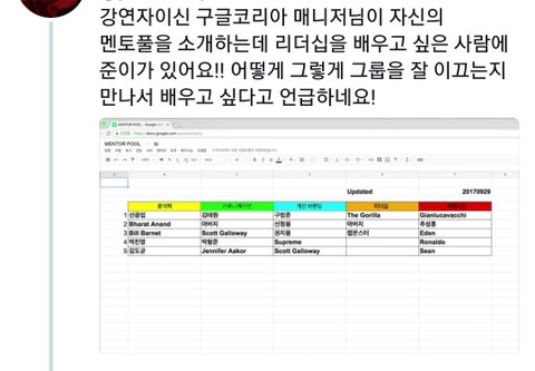 구/글 코리아 매니저님 강연중 리더언급ㅜㅠㅠㅠ