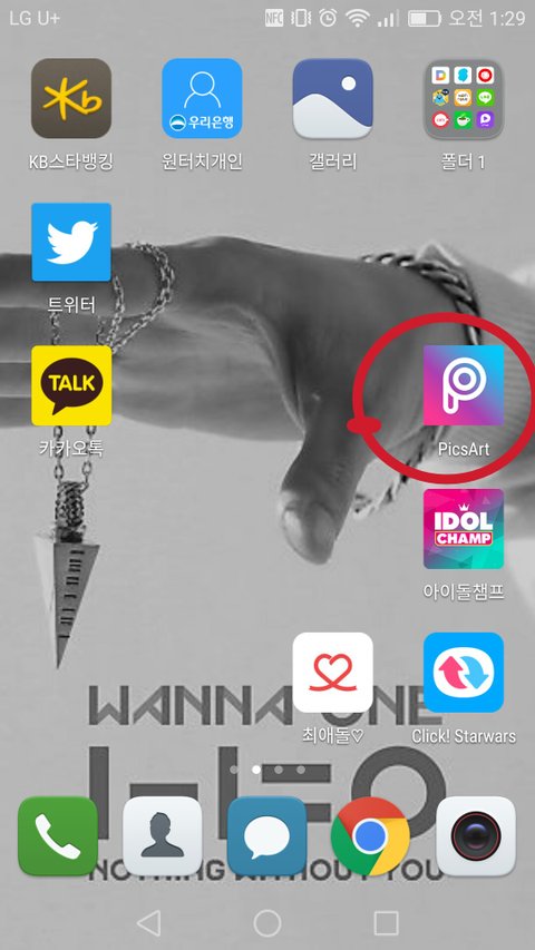 빨간 동그라미 안에 어플 픽스아트를 설치