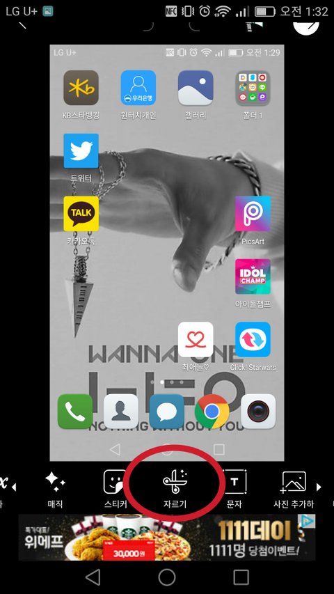 어플을 켜서 저장한 사진 선택 후 빨간 동그라미 안의 자르기로 라인따기(해보면 알겠지만 엄청 쉬움 동손가능)
