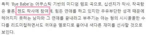 첸x백센치 Bye Babe 오후 6시 공개