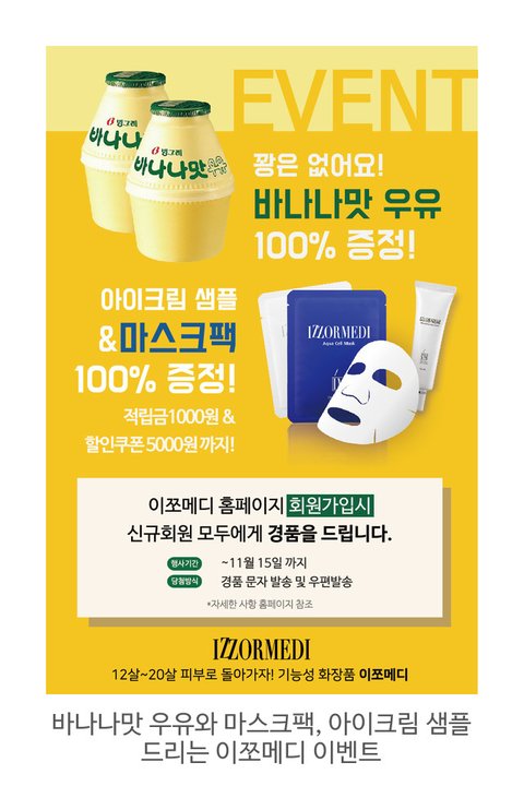 이쪼메디 신규회원가입하면 마스크팩하고 아이크림 샘플 준다고 해~~덤으로 바나나맛 우유까지-관심있는 판녀들은 얼른 얼른 받아가 ㅎㅎ아래 사진 누르면 이쪼메디 회원가입할 수 이썽ㅎㅎㅎ