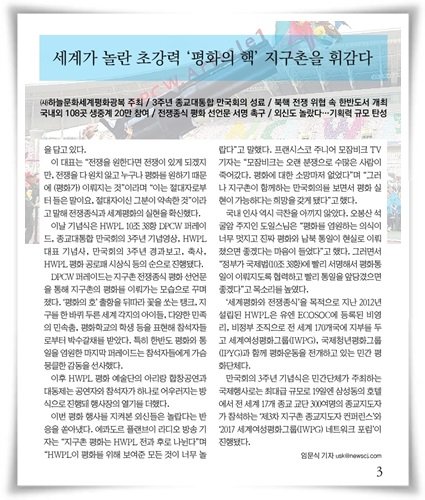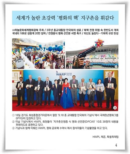 이만희 대표의 "평화를 후대에 유산으로 남겨주자"라는 메시지처럼 전 인류가 소망했던 평화의 세계가 하루빨리 찾아오길 기원합니다.