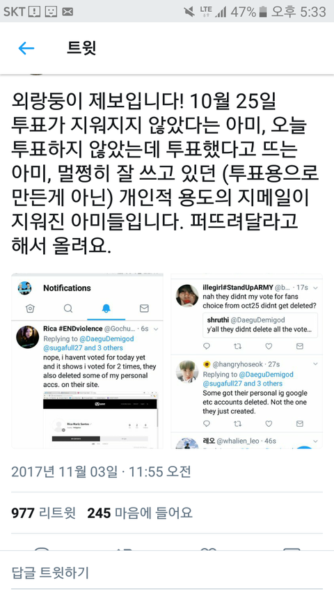 어떤 사람들 투표내역 최근꺼만 빼고 지ㅝ진거라고 부정퉆 이딴말 꺼내는데....