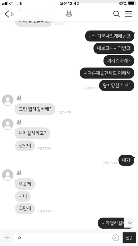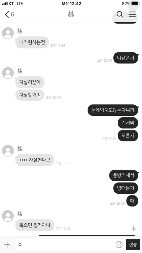 대단해...아무리말하면 뭐함 혼자 화나서 혼자 오버하고 혼자 자살드립치고 ㄹㅇ이런말하면 ㅈㄴ못되보이는데 왕따 당하는데엔 다 이유가 있는거 같아