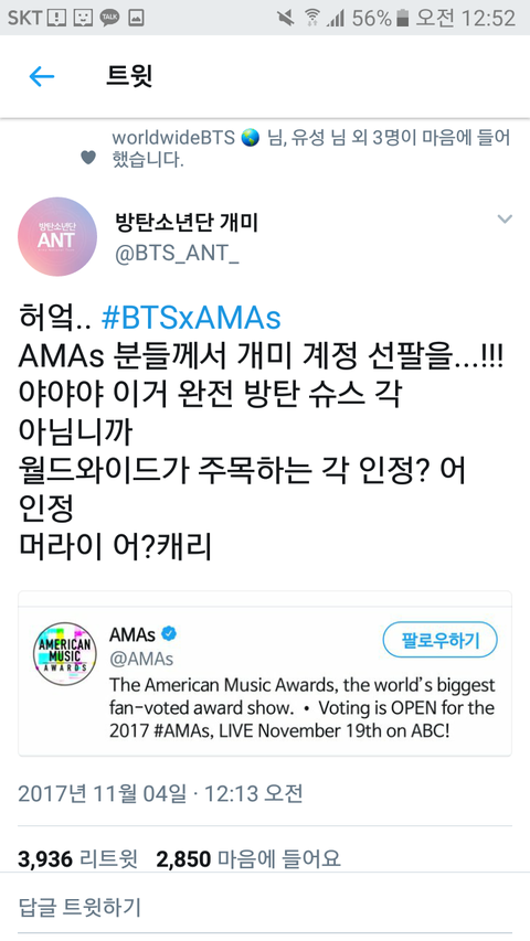 왘ㄱㄱㄱ AMA가 개미팀 팔로우