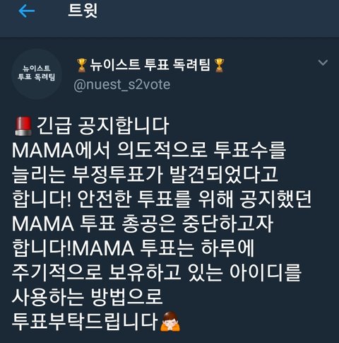 뫄뫄 부정투표 때문에 총공이 중단 되었어 ㅠ.ㅠ