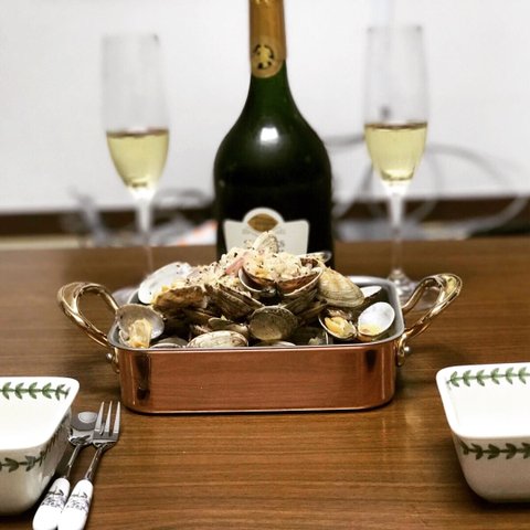 바지락 술찜. 마늘이랑 양파랑 화이트 와인 넣고 휘리릭~