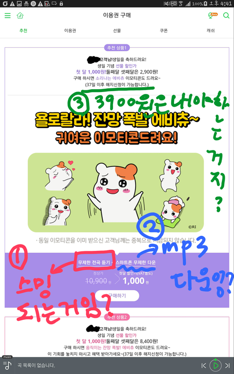 고3이고 이번에 스밍안할라했는데 해야할거같아서 급하게 이용권살라구해