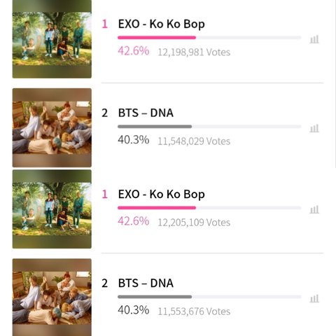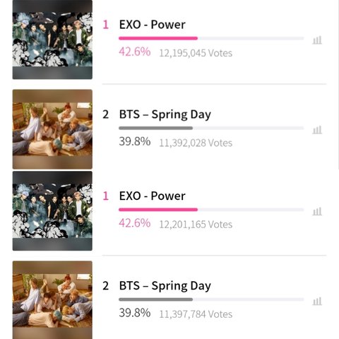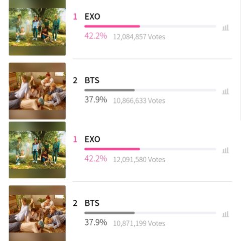 남자그룹 엑소 : 6723 2위분 : 4566 베댄포 엑소 : 6128 2위분 : 5647 베뮤비 엑소 : 6120 2위분 : 5756