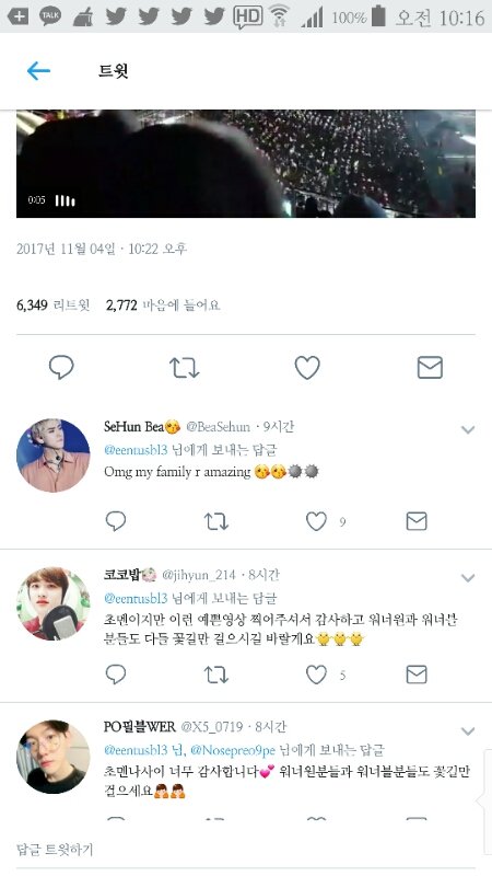 이거 어제 챈벡시 무대때 앣오앨 응원영상인데 해외팬들 멘션 남긴 거 봐 조카 기여워