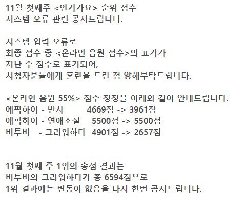 저번에 괜찮아요로 빅뱅한테 사백점으로 졌었는데 음악중심 그때 생방 본 기억이남