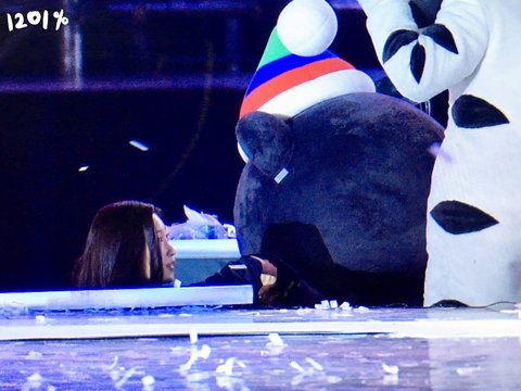 인형탈 친구들 내려오는거 위험할까봐 손잡아서 도와주고