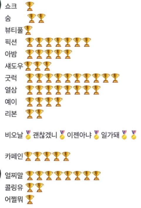 아름다운밤이야때랑 얼찌말때 음중 순위제 폐지안했으면 1위 트로피 더 받았을텐데 아까비..(아밤때는 음중,인가 두개다 순위제 폐지했었음)