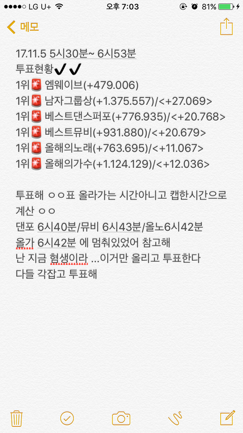 나 혐생이라..ㅎㅎ이거만 올리고 투표한다!! ㅋㅋ걍 추이가 이렇구나 하고 힘내서 투표해줭ㅋㅋ하띵!!!