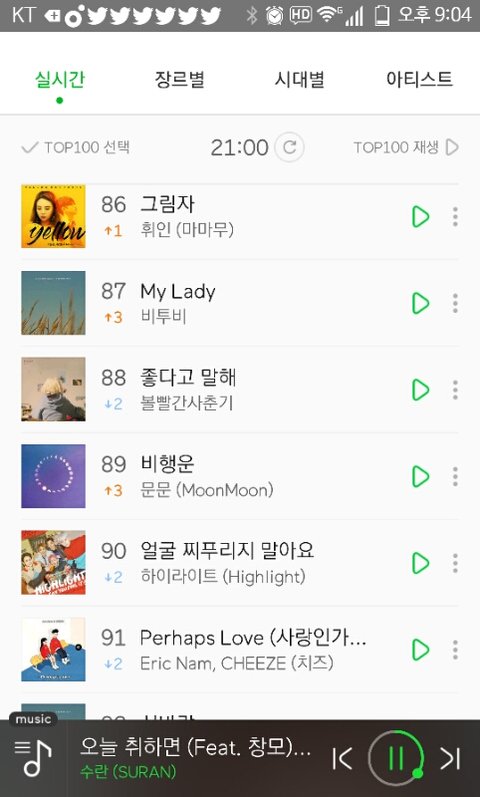근데 이삐들아 예전 정국이가 V앱에서 추천해준 비행운이라는 노래 맬론 실시간 89위 더라!나도 좋아서 꾸준히 듣고 있었는데 뭔가 역주행하니깐 뿌듯하다..ㅎㅎ!