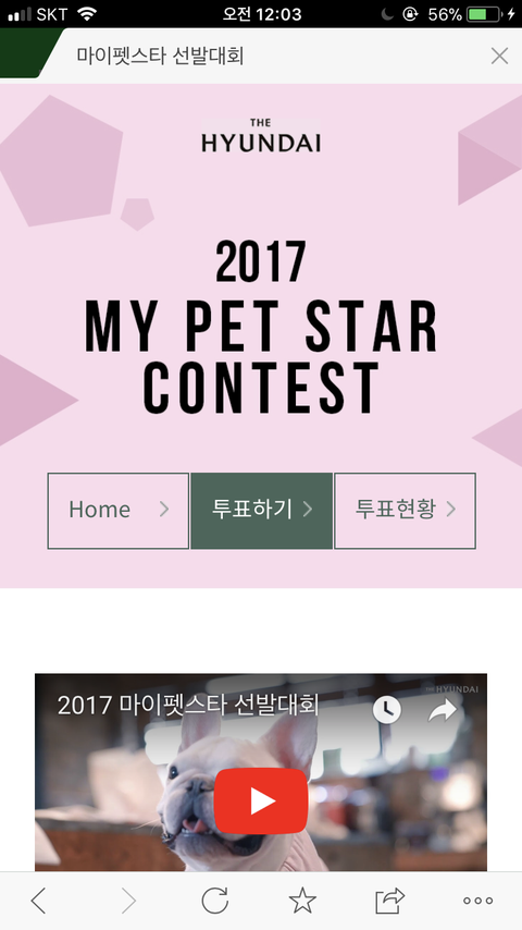 네이버 검색결과에서 현대백화점 밑에 바로 마이펫스타 선발대회 배너링크가 있었구요, 그걸 눌러 이벤트 페이지로 들어가는 것은 저에게 보여주지 않았습니다. 제가 못만지게했어요. 그저 인증화면가지고 빨리 해달라고 했습니다. (여기서 문제가 발생합니다.)