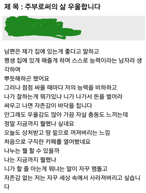 주부로서의 삶 우울합니다