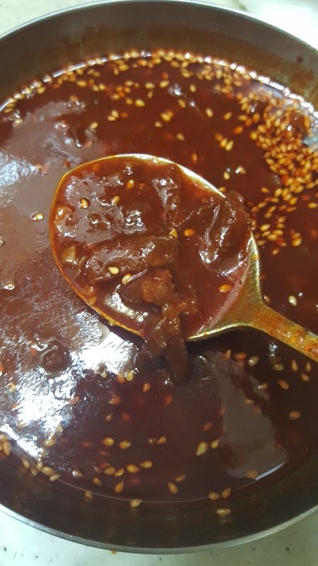 고추장은 고추장에 설탕,물엿,소금,후추,간장,고춧가루,물 넣었습니다