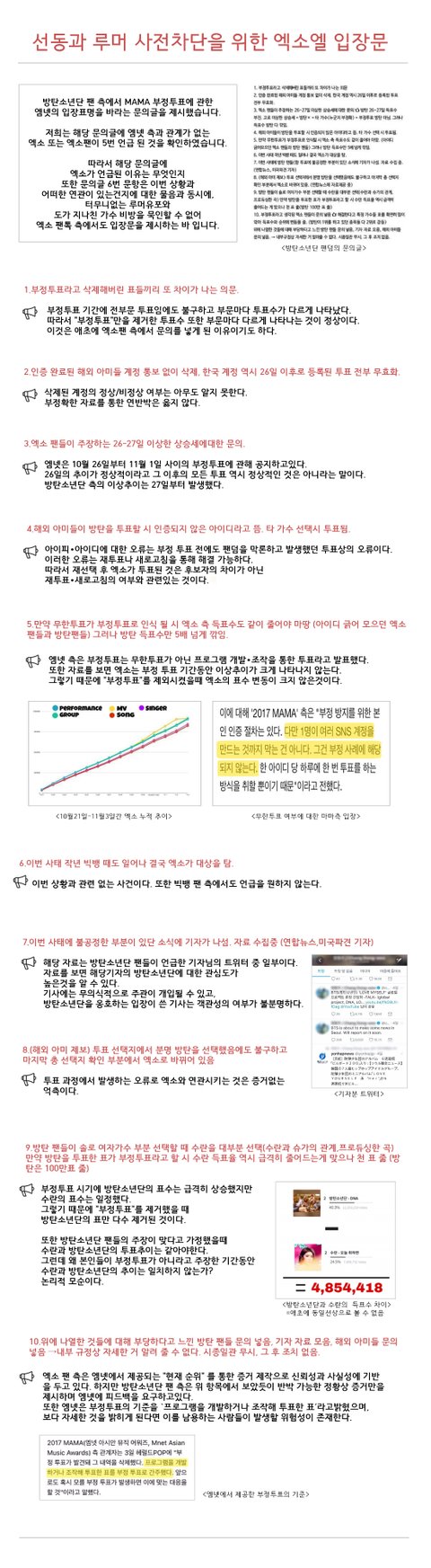 다음은 네이트판 엑소톡의 그동안 엔터 내 루머 반박문입니다.