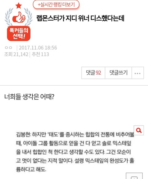 어떤 어그로+관종이 이상한글 올리고 예전글을 올리면서 랩몬스터님 욕먹이고 있거든 심지어 베스트 댓글에서 해명까지 해준것 같은데 그래서 내가 ㅂㅁㄱ좀 하라고 댓달았는데 무시하고 계속 다는것도 똑같은 관종+어그로라고 보거든 이런게 톡선 올라 간다고 좋을꺼 없잖아 근데 댓글수 많을수록 톡선 올라 가는데 ㅂㅁㄱ안하고 계속 다는 심보을 모르겠어서 이글 어떻게 해야할까??..이런거 안되면 글삭할께 너무화가나서