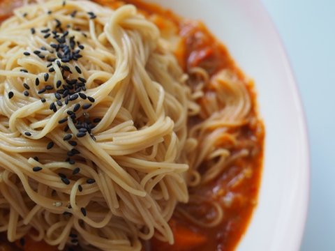 통밀소면이라 좀 누리끼리 합니다.