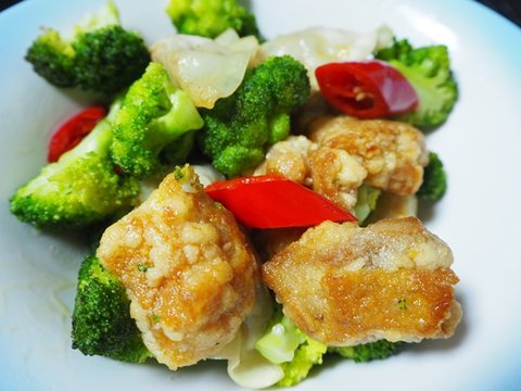 브로콜리+치킨가라아게+비비고왕교자를 볶볶...
