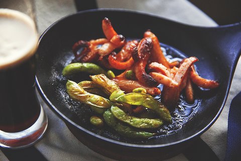 5. 코난님이 좋아하는 그 브랜드 맥주와 문어소세지. 그리고 바질페스토에 볶아낸 그린빈