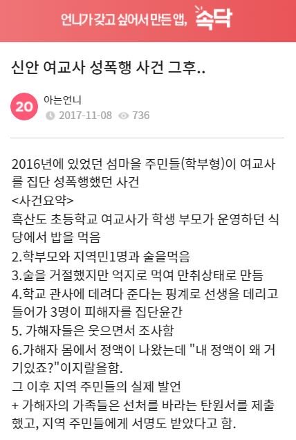 신안군 여교사 집단 성폭행 사건 그 후...변한건 아무것도 없다..ㅅㅂ