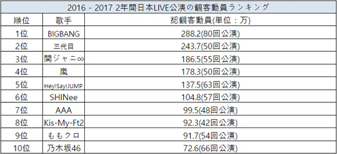 2016 -2017기간동안 팬미팅,투어 총 종합 관객 동원
