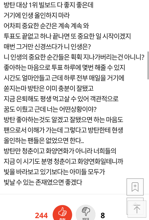 보통 이런 글 올리면 ㅂㅁㄱ 하거나 투표나 하라고 후드려쳐맞기 일순데 따봉 박힌 수 보면,,