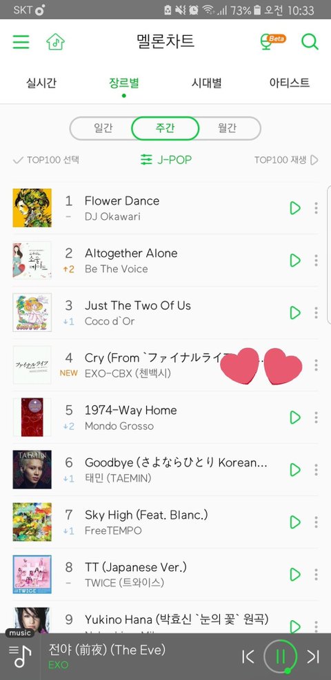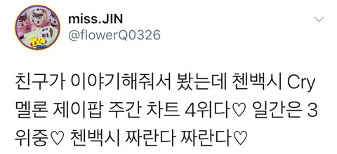 첸백시 Cry 멜론 제이팝 주간차트 4위!!!!!!!!!!