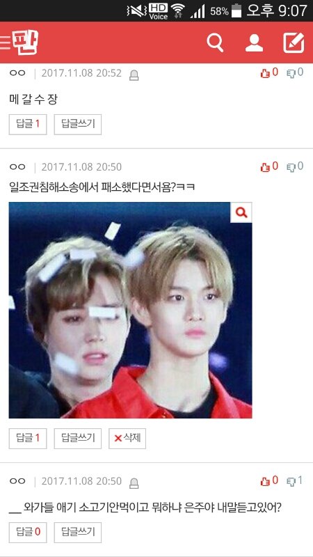 소속사 욕하는 아래댓글이 더 잘못했냐,