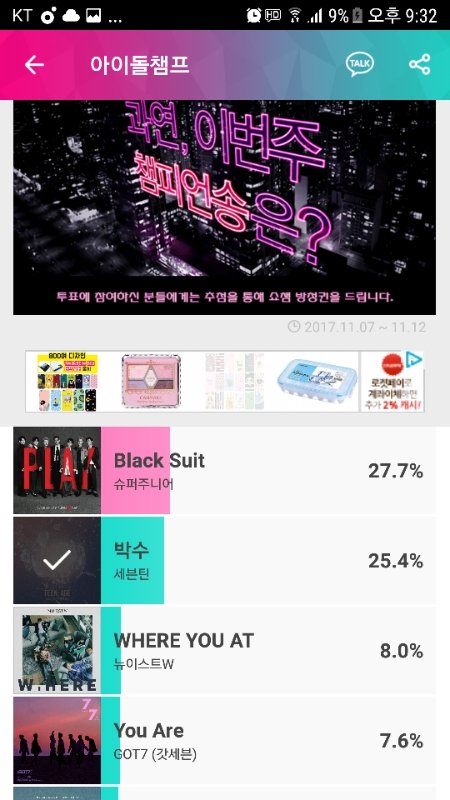 아2돌챔프 1위랑 2퍼정도 차이나 빨리 투표하자!!!