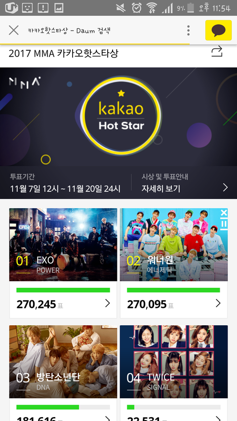 카카오핫스타상 역전당함 자정 투표ㄱㄱㄱ