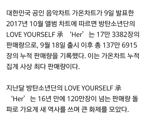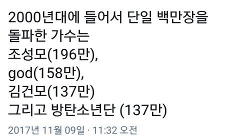 +}헐 방탄 단일 앨범 137만장 찍음