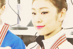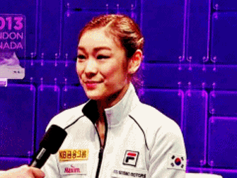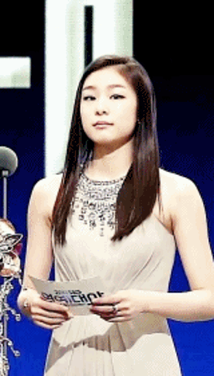 올림픽 금메달 시상식에서 사회자가 연아를 소개하자 저러고 웃는닼ㅋ