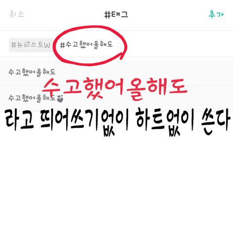 해시태그는 수고했어올해도 띄어쓰기없이!! ♡없이!!