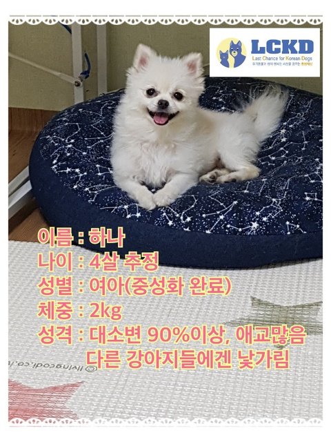 성격 : 애교많고 친화력이 좋으나 다른 강아지가 다가오는것을 좋아하지 않음. 임보중 배변훈련 되어 현재 대소변 90%이상 가림.
